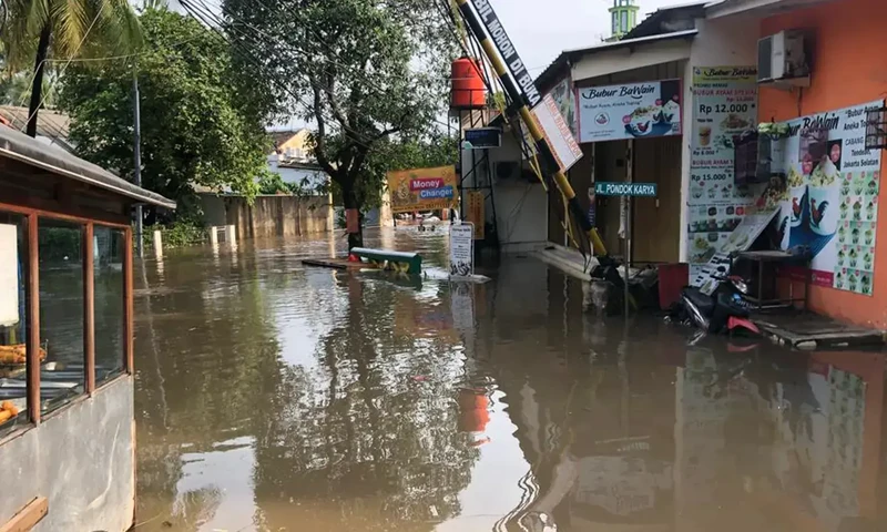 Sebanyak 18 Rukun Tetangga (RT) di ibu kota Jakarta dilaporkan terendam banjir dengan ketinggian bervariasi pada Rabu (15/3/2023). (Foto: Parboaboa/Rini)