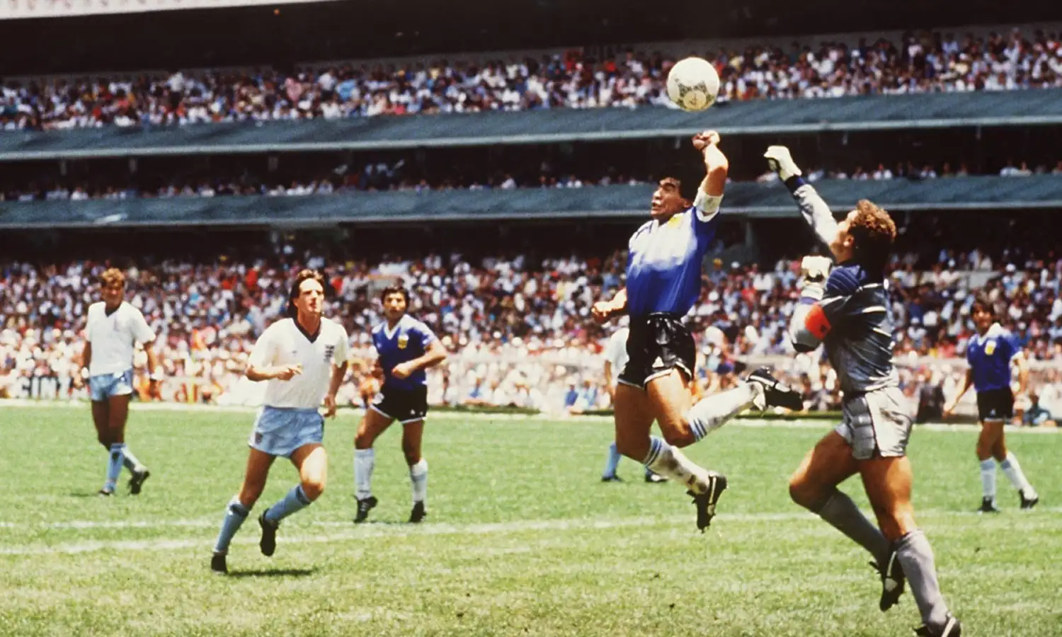Pemain Argentina ini mencetak gol dengan menggunakan tangannya dan menyingkirkan Inggris dari Piala Dunia. Wasit dan asistennya tetap mengesahkan gol tersebut meskipun para pemain Inggris melakukan protes di lapangan.