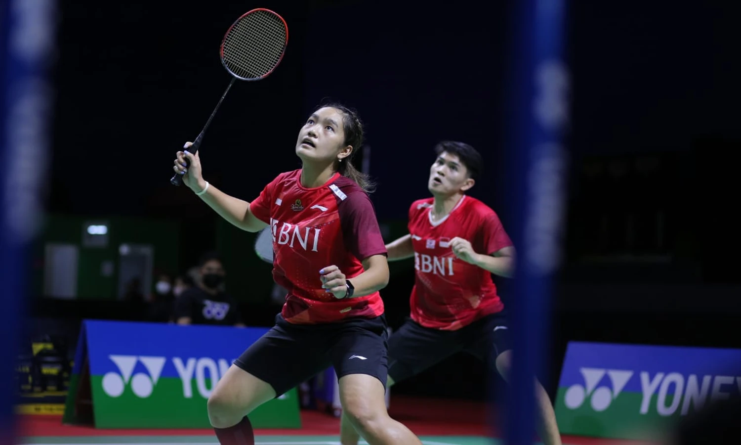 PARBOABOA – Ganda campuran Indonesia Adnan Maulana/Nita Violina Marwah fokus menghadapi duet Australia Pit Seng Low/Yuran Zheng di babak pertama Australian Open 2022, Selasa (15/11/2022).