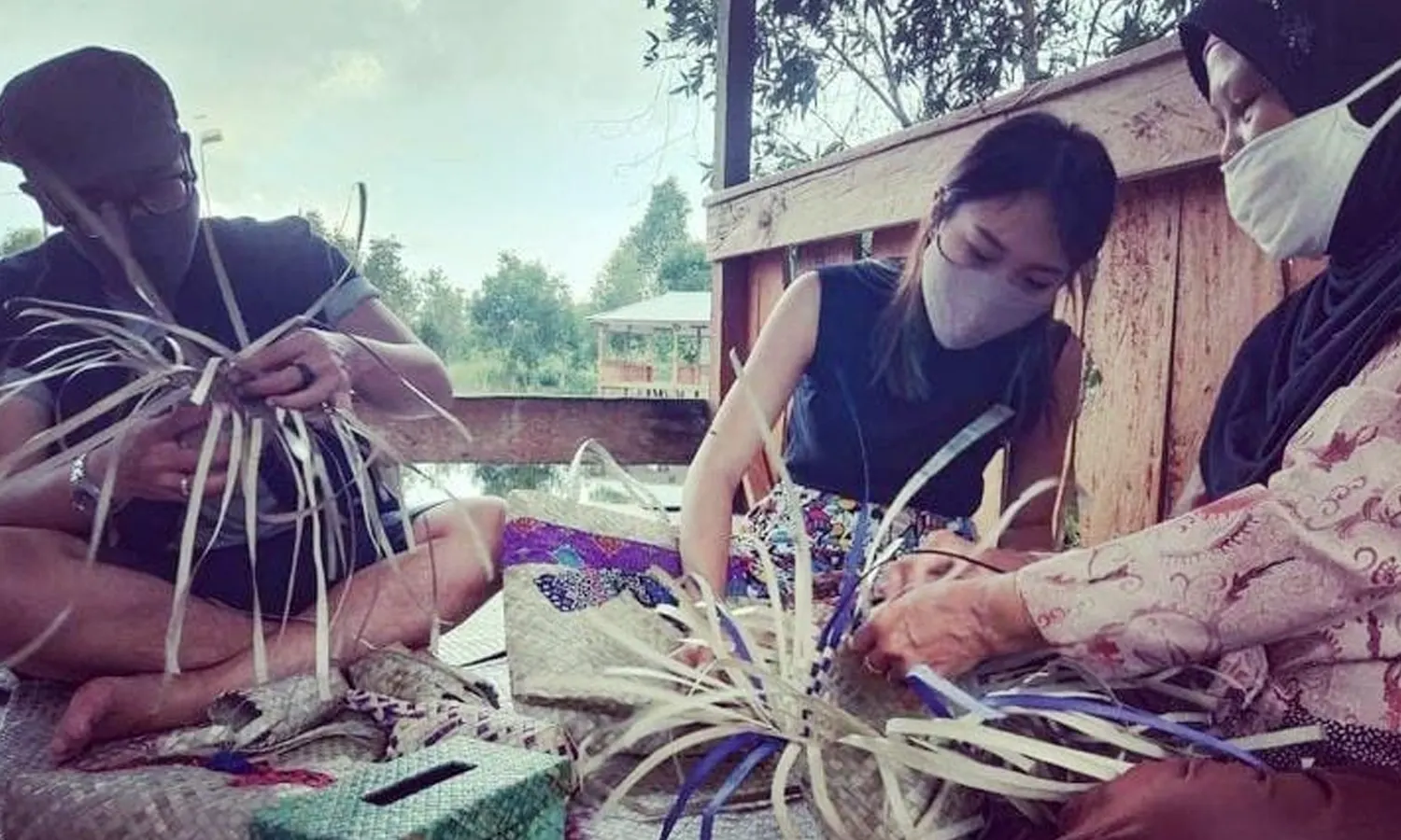 "Makanan khas setempat rasanya maknyusss, ada bolu sawi, kripik sawi, makan bedulang. Asli masakan ibu-ibu komunitas di desa wisata setempat," tulis Angela.