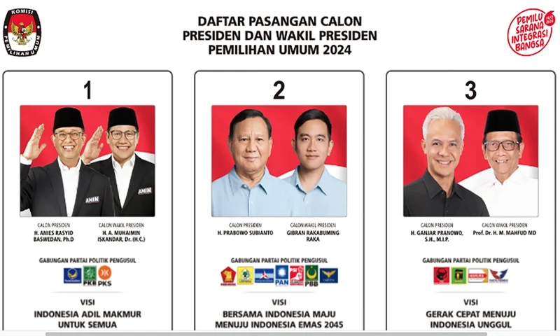 Daftar pasangan calon presiden dan wakil presiden pemilihan umum 2024. (Sumber Foto: KPU)