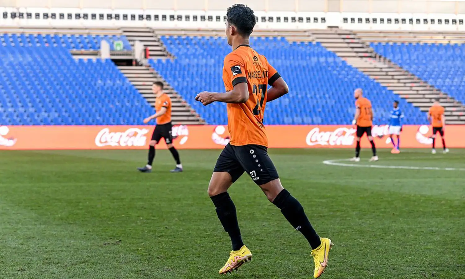 Gelandang Timnas Indonesia, Marselino Ferdinan, akhirnya mencatatkan debut sebagai starter dalam pertandingan KMSK Deinze melawan Oostende pada laga persahabatan, Kamis (23/3/2023) di Albertpark, Ostend, Belgia. (Foto: Instagram/@kmskdeinze)