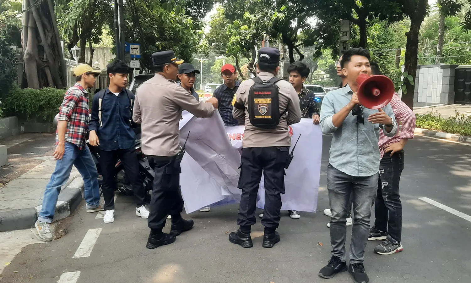 Aksi yang dilakukan di Jalan Teuku Umar, Jakarta Pusat itu dibubarkan Kepolisian Sektor (Polsek) Menteng, karena dilakukan tanpa izin atau ilegal.