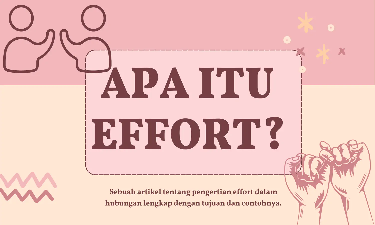 Effort berasal dari bahasa Inggris yang berarti upaya atau usaha. Secara umum, effort adalah merujuk pada tingkat energi atau waktu yang diperlukan untuk menyelesaikan suatu tugas atau mencapai suatu tujuan. Tingkat effort dapat berbeda-beda untuk setiap orang, tergantung pada kemampuan, motivasi, dan faktor-faktor lainnya.