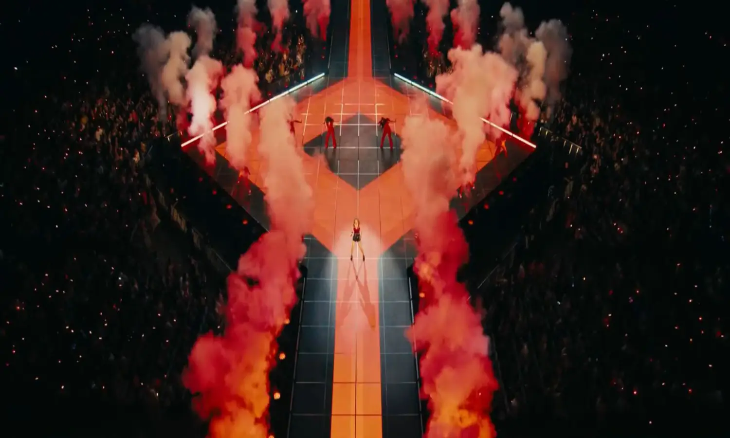 Taylor Swift dalam Film The Eras Tour, tampak sedang menyanyi di atas panggung dihadapan ribuan penonton. (Foto: YouTube/ Taylor Swift)