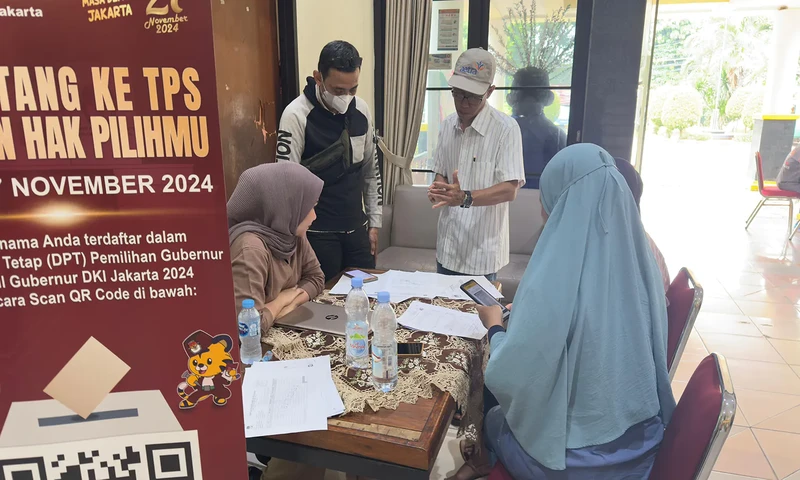 Anggota PPS sedang mendata nama petugas Kelompok Penyelenggara Pemungutan Suara (KPPS) di salah satu TPS di Jakarta Timur (Foto: PARBOABOA/Defri Ngo)
