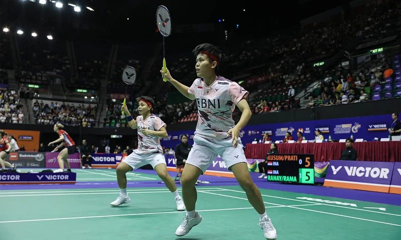 Apriyani Rahayu/Siti Fadia Silva Ramadhanti menang dalam laga derbi melawan Febriana Dwipuji Kusuma/Amallia Cahaya Pratiwi di Hong Kong Open 2023. (Foto: PBSI)
