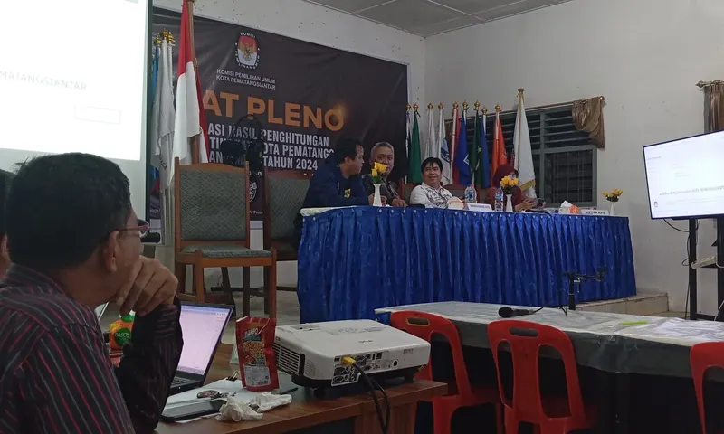 Finalisasi rekapitulasi pemilu 2024 di Pematangsiantar yang berlangsung di Gedung Dharma Wanita, jalan Porsea. (Foto: PARBOABOA/Rizal Tanjung)