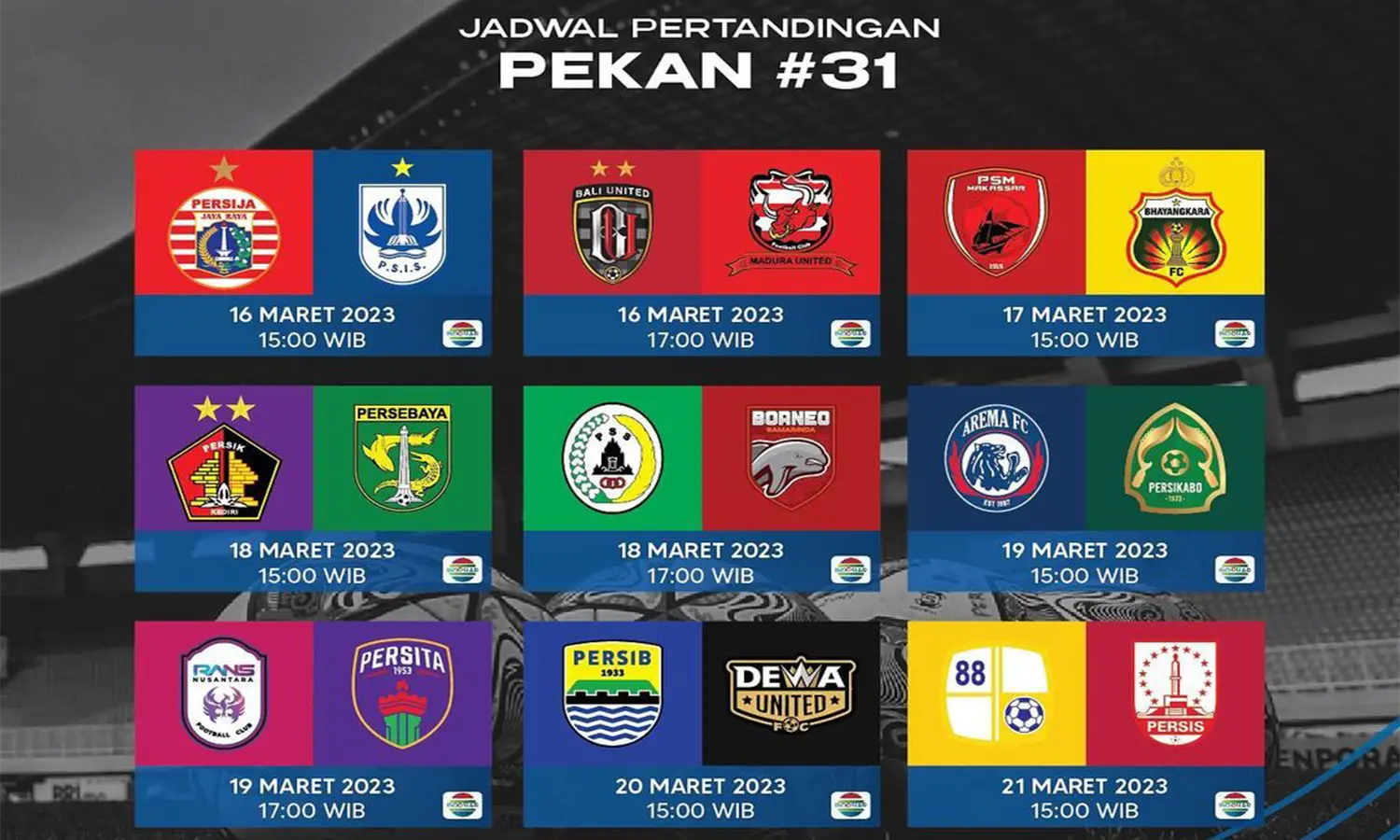 PARBOABOA – Kompetisi BRI Liga 1 2022/2023 akan memasuki pekan ke-31. Pertandingan awal akan dimainkan pada Kamis (16/3/2023) pukul 15.00 WIB, antara Persija Jakarta dan PSIS Semarang di Stadion Wibawa Mukti.