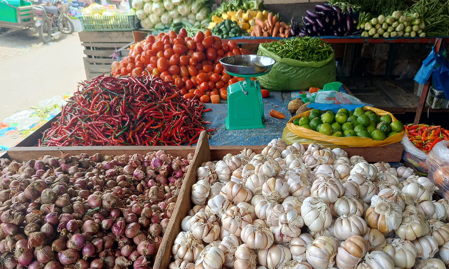 Sementara, bawang merah antara Rp 31.750 - Rp 32.000 per kg, bawang putih Rp 30 ribu per kg, cabai merah Rp 34.250, minyak goreng Rp 18.350 per liter dan gula pasir Rp 14.500 - Rp 15.000 per kg.