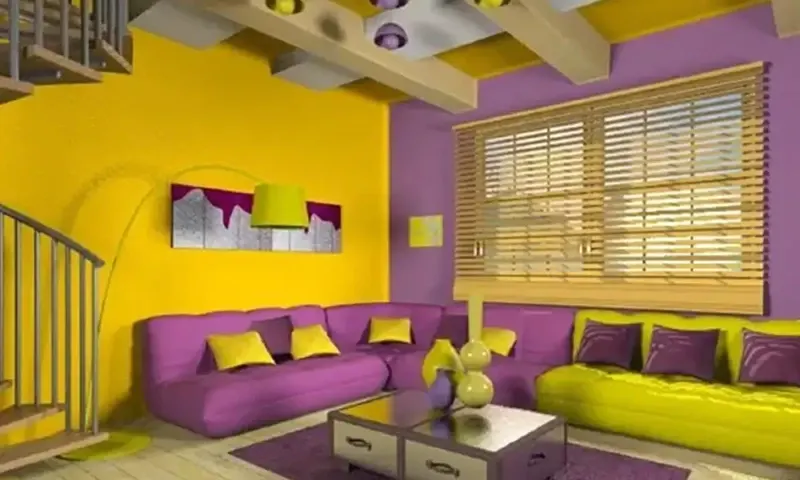 Inspirasi kombinasi cat rumah warna ungu dan kuning, foto: rwhome.web.id