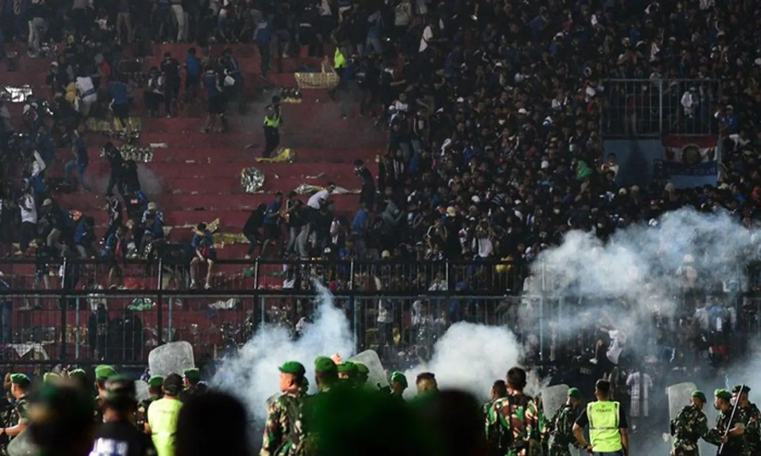 Sayangnya, hal tersebut membuat polisi menembakkan gas air mata ke lapangan dan ke arah tribun stadion yang mengakibatkan suporter panik, hingga berujung memakan korban sebanyak 132 orang tewas termasuk 2 personel polisi.