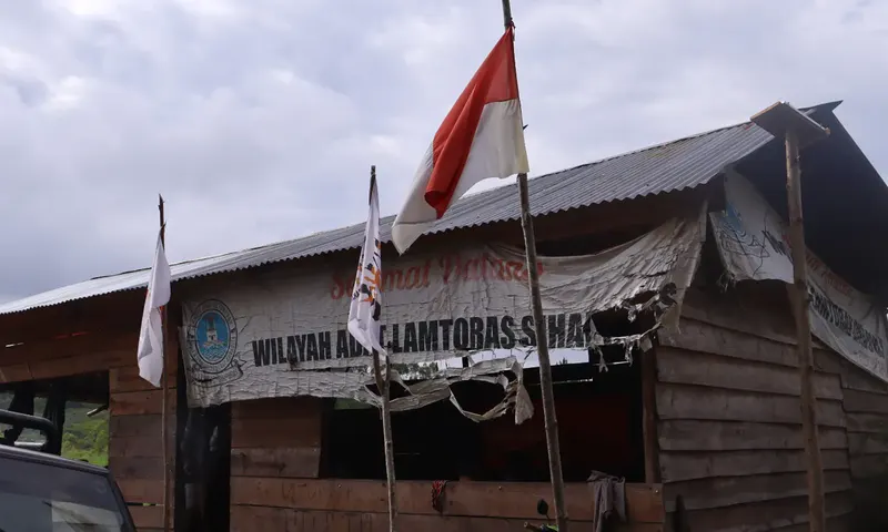 Posko masyarakat adat Sihaporas di Buntu Pangaturan Desa Sihaporas yang menjadi lokasi penangkapan masyarakat adat (Foto: PARBOABOA/David Rumahorbo)