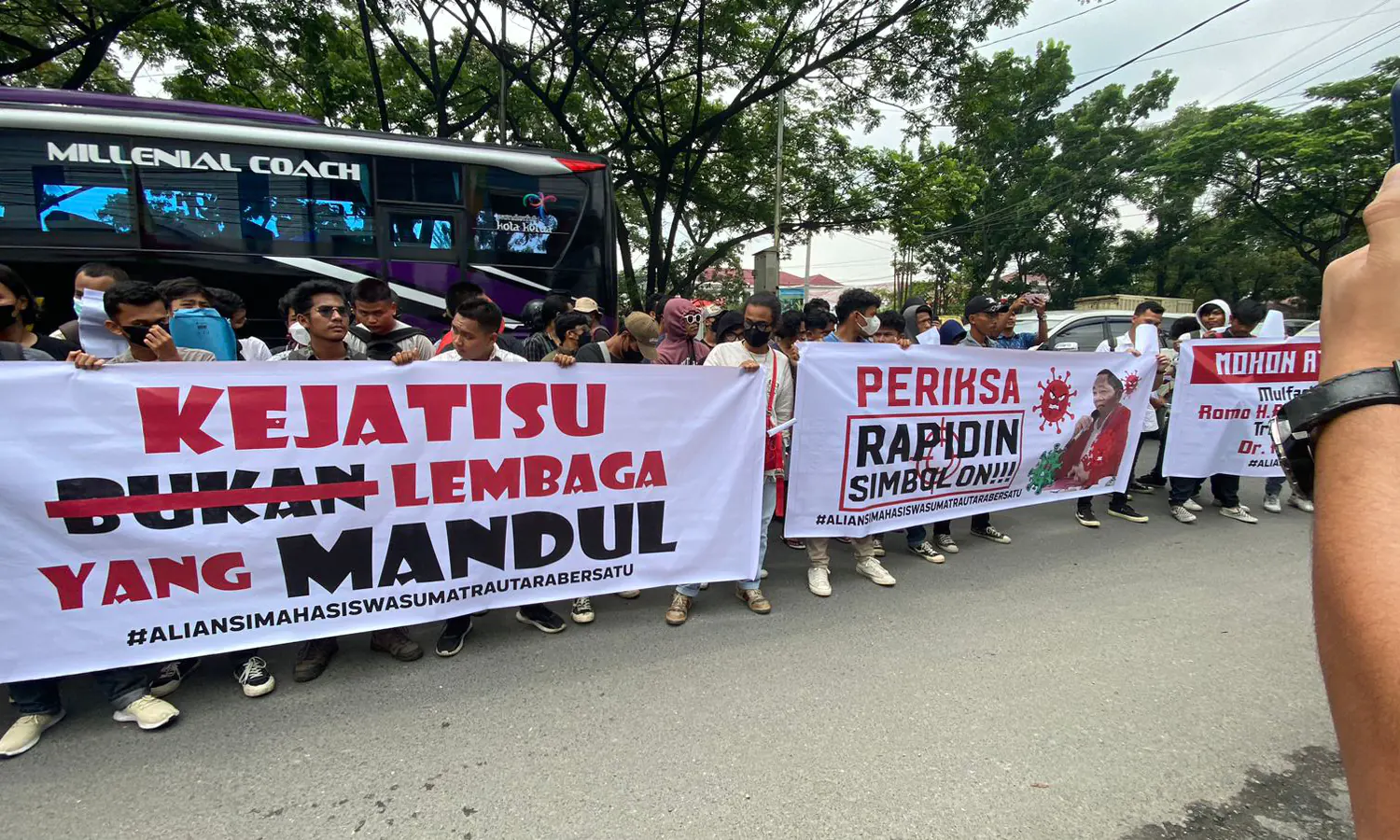 Menurut koordinator aksi, Rahmad, mahasiswa meminta agar Kejatisu segera memeriksa Rapidin Simbolon. Pasalnya dalam salinan putusan Mahkamah Agung RI Nomor: 439 K/Pid.Sus/2023 untuk kasus eks Sekda Samosir, Jabiat Sagala disebut nama Rapidin turut menikmati dana penanganan COVID-19.