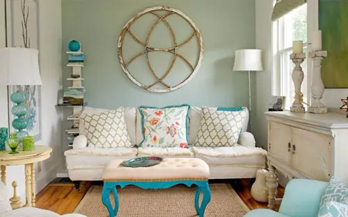 Cukup dengan dua buah cermin berbingkai antik, rumah shabby chic ini berhasil menerapkan tips pertama dalam menata ruang tamu kecil yaitu cermin untuk efek ruangan luas.Â