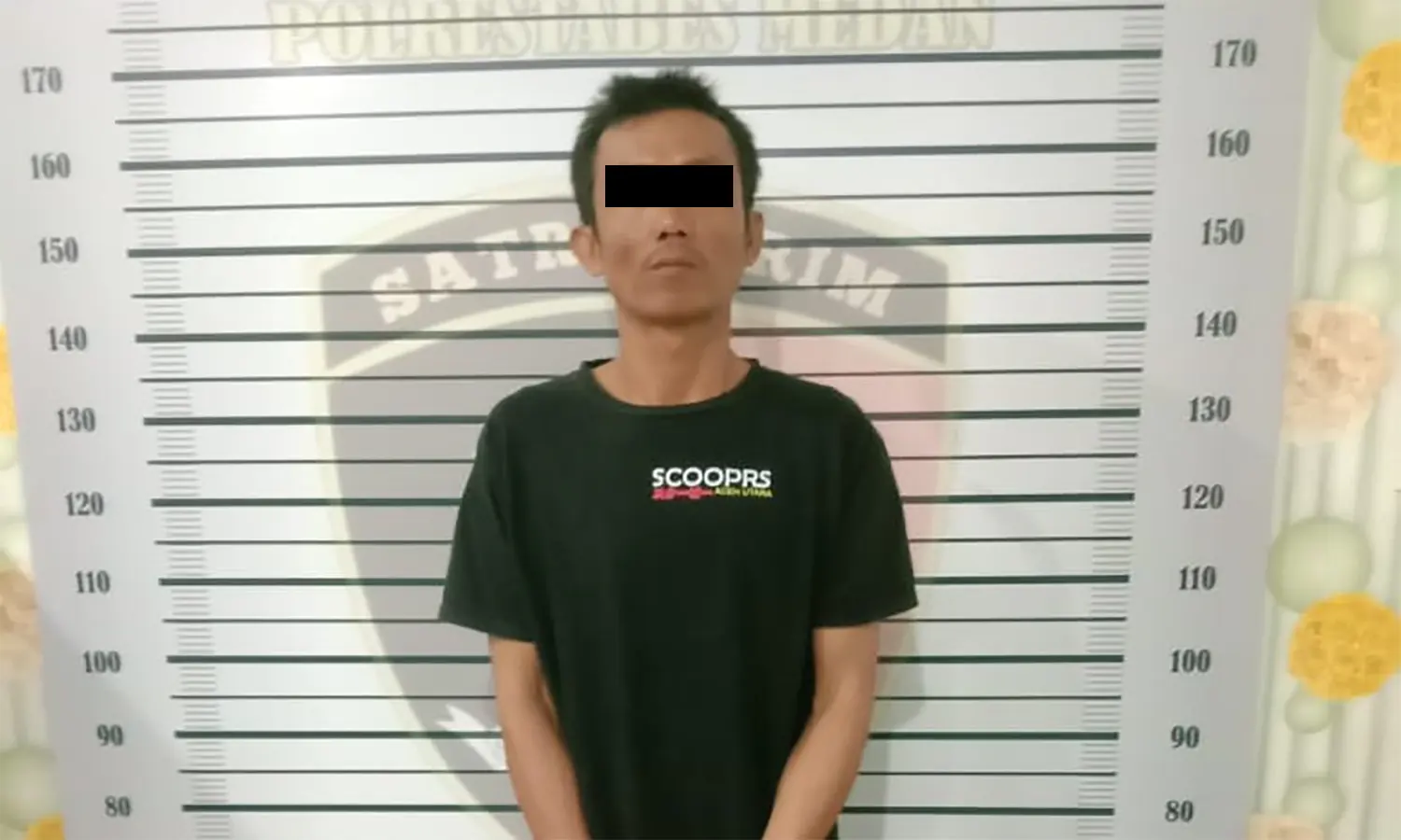 Pelaku pembunuhan terhadap wanita tukang pijat yang merupakan istrinya sendiri diamankan polisi, Rabu (1/2/2023). Motif pembunuhan ini karena pelaku cemburu. (Foto: Dok. Polsek Percut Sei Tuan).