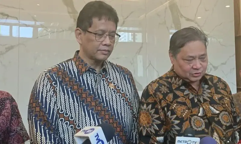 Airlangga Hartarto didampingi Purbaya Yudhi Sadewa Saat Konftransi Pers, (Foto: Dok. Antara)