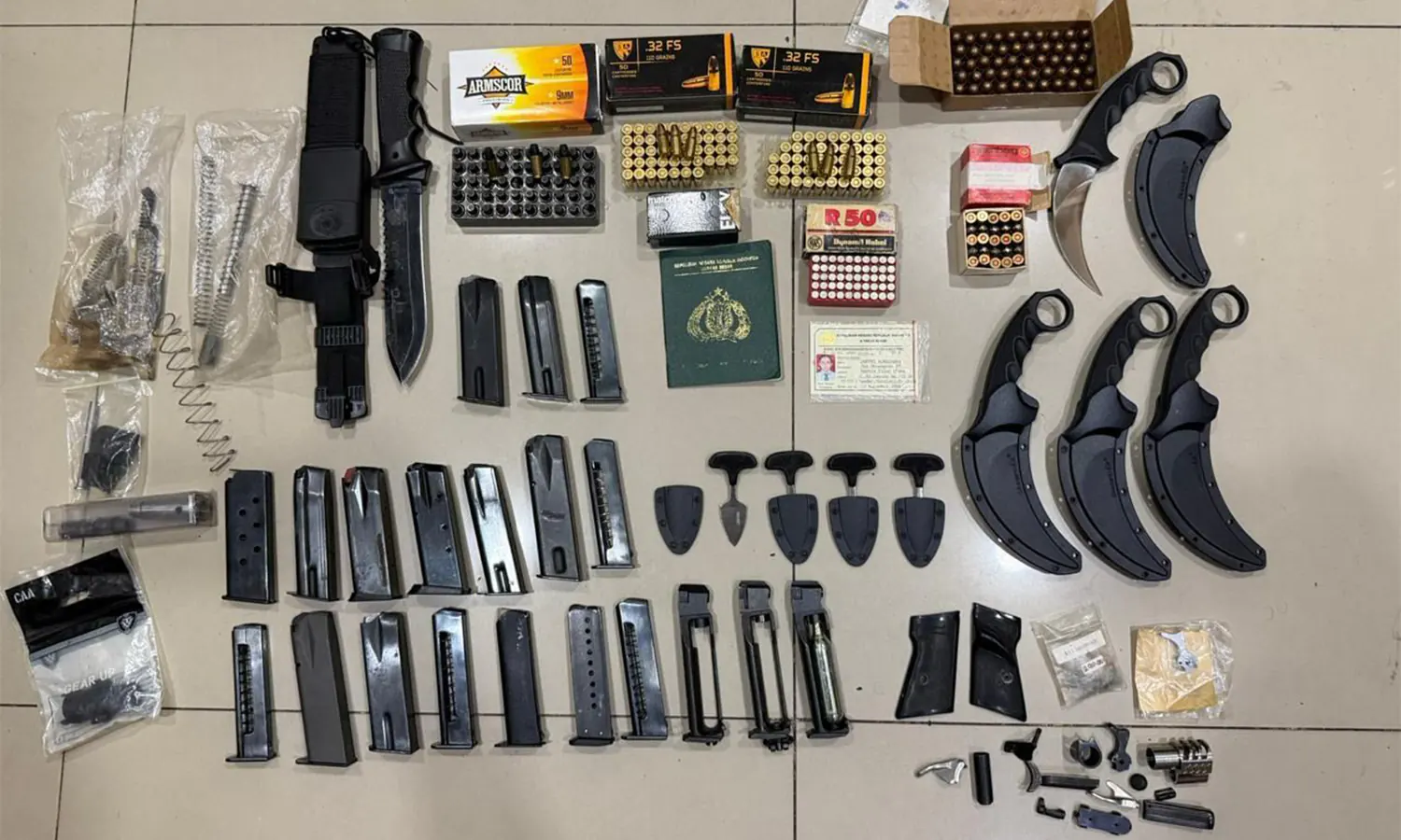 Penggeledahan di tempat tinggal OA mengungkap skala penyimpanan senjata dan amunisi ilegal yang cukup besar. Polisi menemukan ratusan butir amunisi dari berbagai kaliber, mulai dari 9 mm, 22 mm hingga 45 mm.