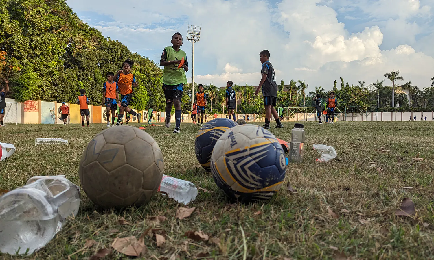 Pemain anak usia dini yang ada di SSB Nusantara DKI Jakarta fokus rutin mengikuti latihan sepakbola. (Foto: PARBOABOA/Calvin Siboro)