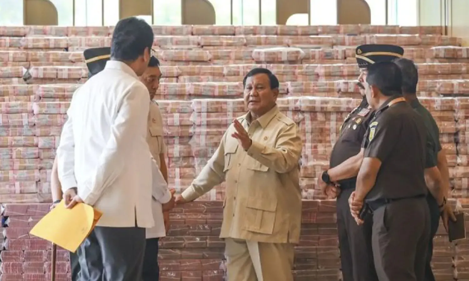 PARBOABOA, Jakarta - Presiden RI Prabowo Subianto menyaksikan langsung penyerahan uang pengganti kerugian negara senilai Rp13,2 triliun hasil perkara korupsi ekspor crude palm oil (CPO) di Gedung Kejaksaan Agung, Jakarta, Senin (20/10/2025).