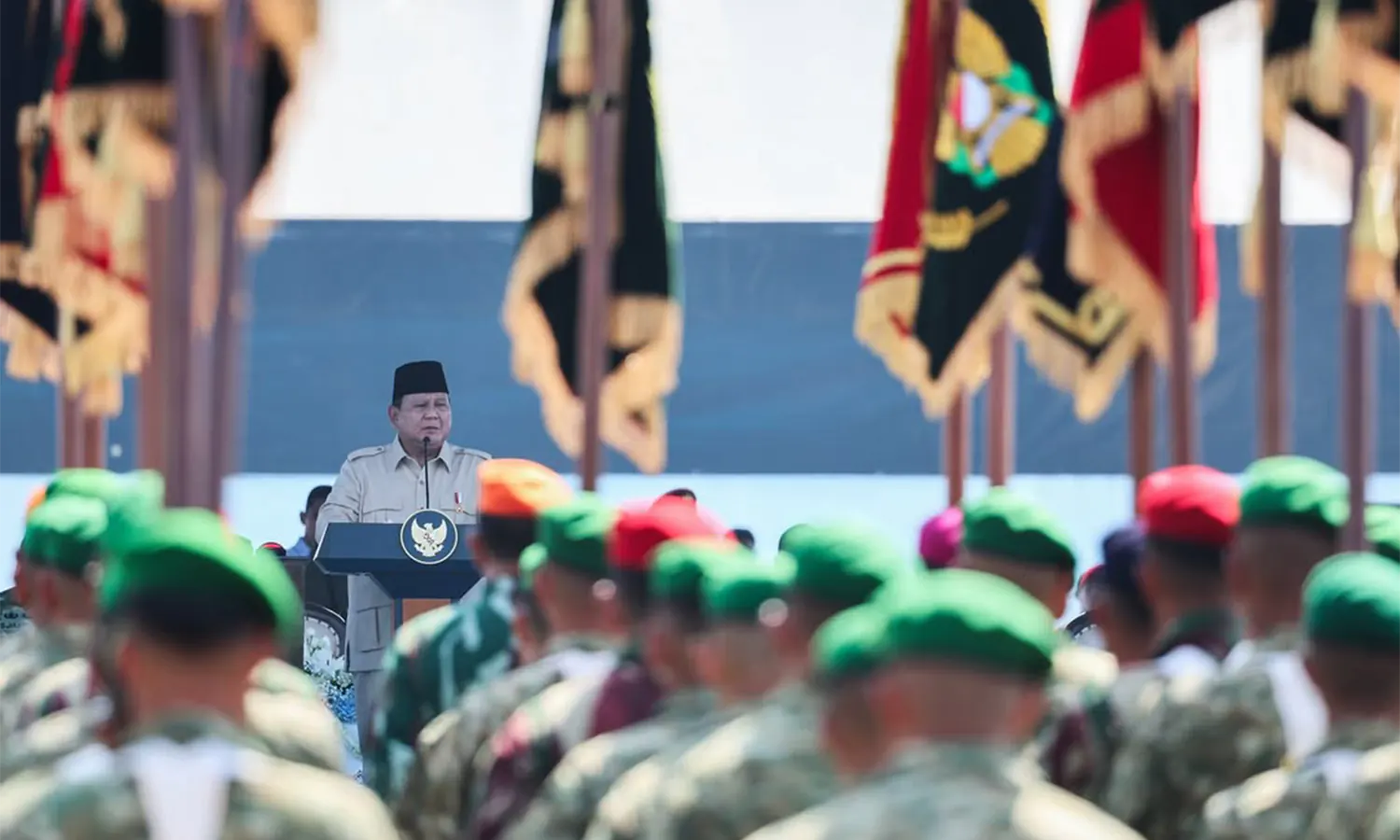 Presiden memimpin Upacara Gelar Pasukan Operasional dan Kehormatan Militer di Pusdiklatpassus, Kabupaten Bandung Barat, Jawa Barat pada Minggu (10/8/2025). (Foto: IG/@presidenrepublikindonesia).
