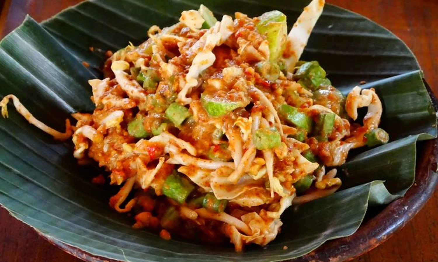 Makan yang satau ini dibuat dengan baha-bahan sayuran mentah seperti mentimun, taoge, kol, kacang panjang, daun kemangi, terong dan leunca.