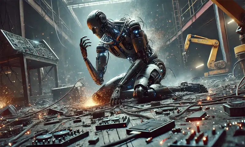 Ilustrasi sebuah robot yang membunuh dirinya sendiri. (Foto: PARBOABOA/Fika)