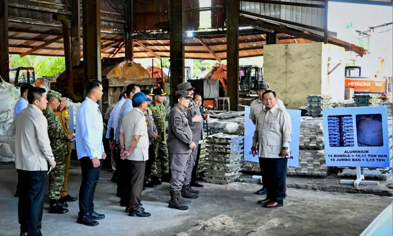 Presiden Prabowo menyaksikan Penyerahan Aset Barang Rampasan Negara kepada PT Timah Tbk., yang digelar di Smelter PT Tinindo Internusa, Kota Pangkal Pinang, Provinsi Kepulauan Bangka Belitung, Senin (6/10/2025) (Foto: dok. BPMI Setpres)