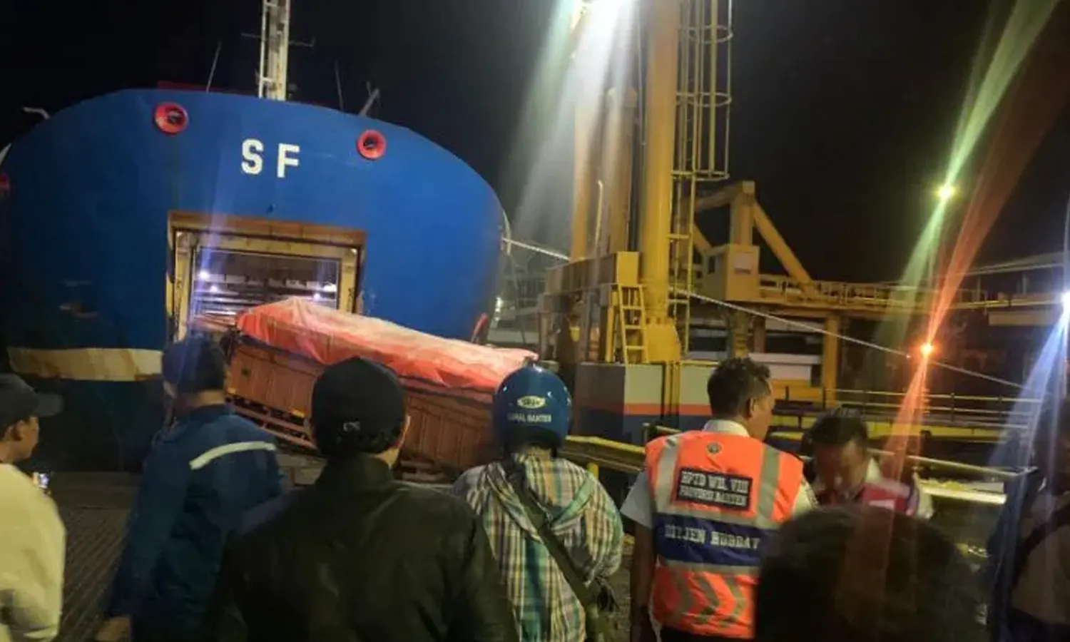 PARBOABOA, Jakarta - Sebuah truk pengangkut semen tercebur ke laut setelah sempat tersangkut saat akan memasuki kapal di Pelabuhan Merak, Banten, Rabu (28/12/2022) malam.
