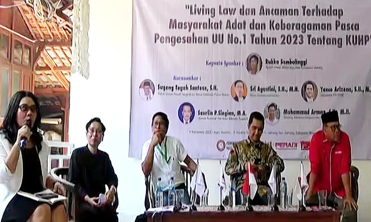 "Pasal 2 UU KUHP juga disebutkan, hukum adat berlaku bagi setiap orang yang melakukan tindak pidana adat di daerah tersebut sepanjang tidak diatur dalam UU KUHP dan sesuai dengan nilai-nilai yang terkandung dalam Pancasila," katanya dalam sebuah diskusi yang diselenggarakan Aliansi Masyarakat Adat Nusantara, Rabu (6/9/2023) kemarin.