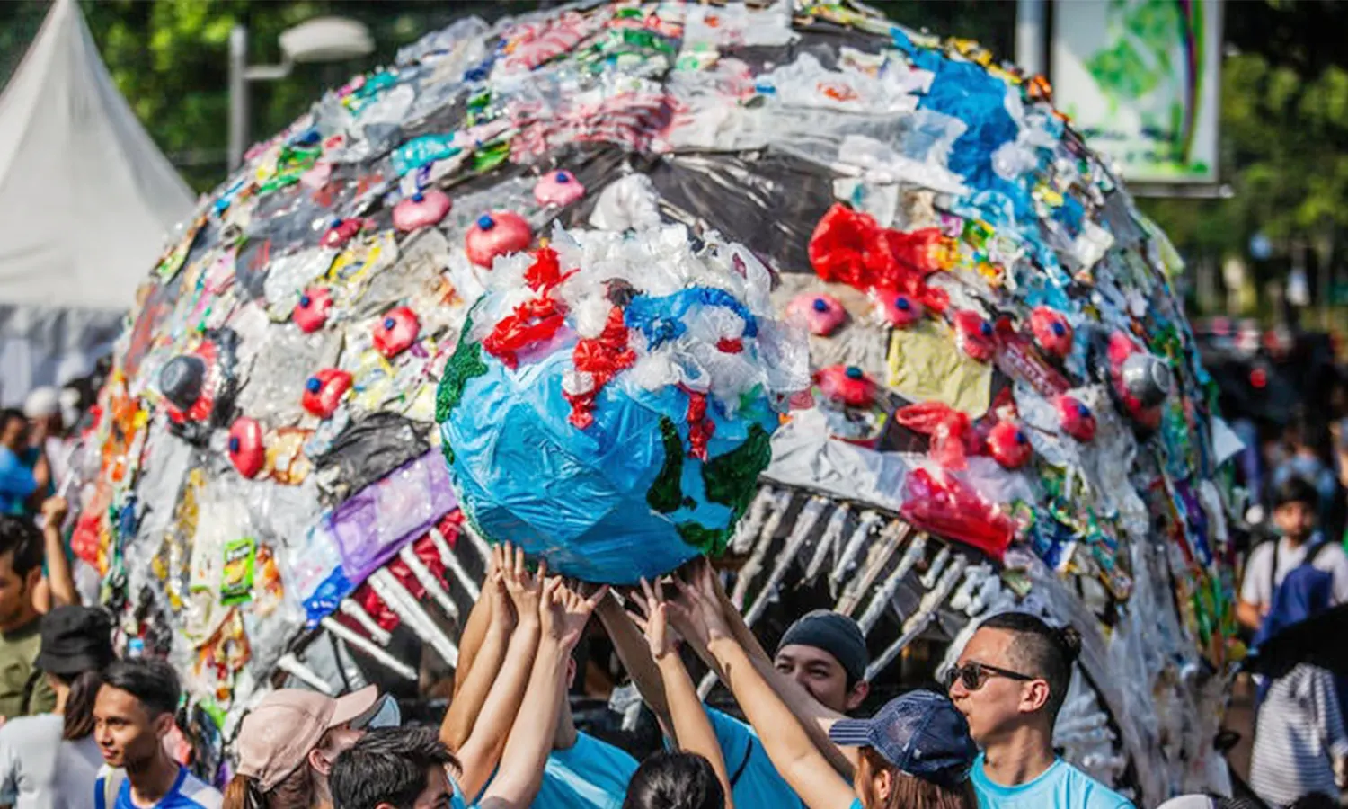 Sampah plastik monster yang akan dibawa dalam acara pawai bebas plastik di kawasan Car Free Day Jakarta, Minggu (30/7/2023) besok. (Foto: Greenpeace Indonesia)