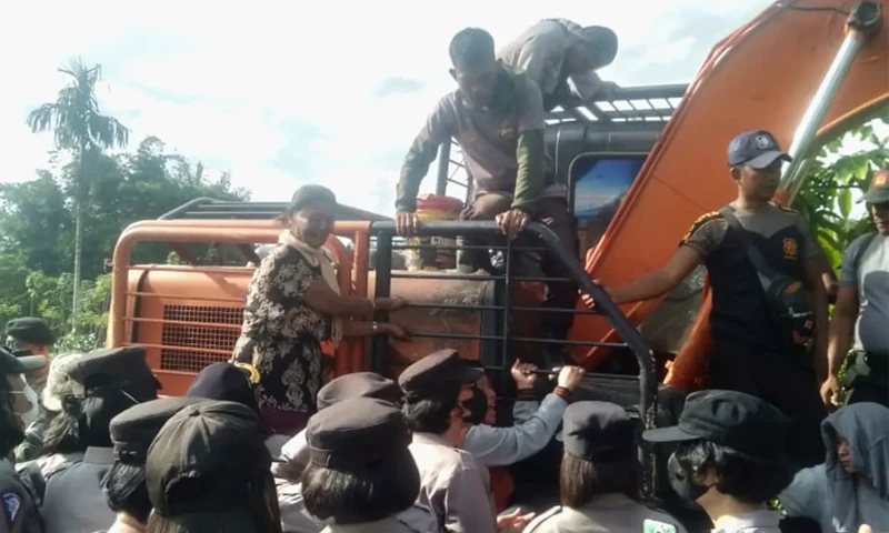 Warga Kelurahan Bah Sorma dan Gurilla,Siantar Sitalasari, Kota Pematang Siantar saat melawan penggusuran paksa atas lahan mereka yang dilakukan PTPN III Unit Kebun Bangun, Rabu (25/1/2023). (Foto: PARBOABOA/Putra Purba)