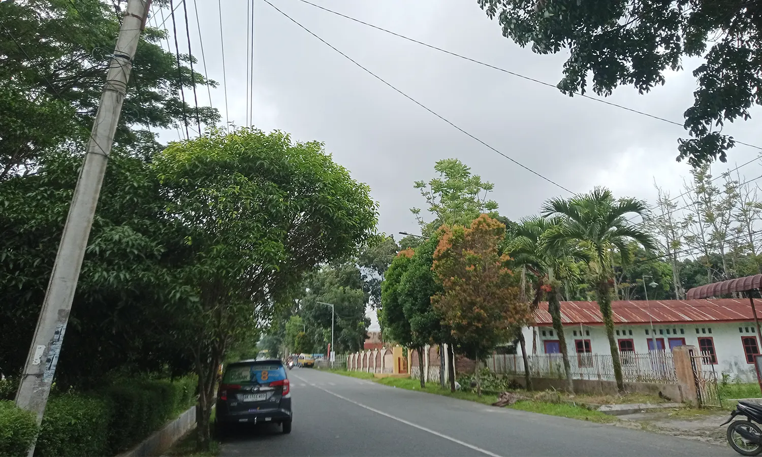Salah satu titik lampu penerangan jalan umum di ruas Jalan Farel Pasaribu, Kelurahan Sukamaju, Kecamatan Siantar Marihat yang telah padam selama enam bulan. (Foto: PARBOABOA/Putra Purba)