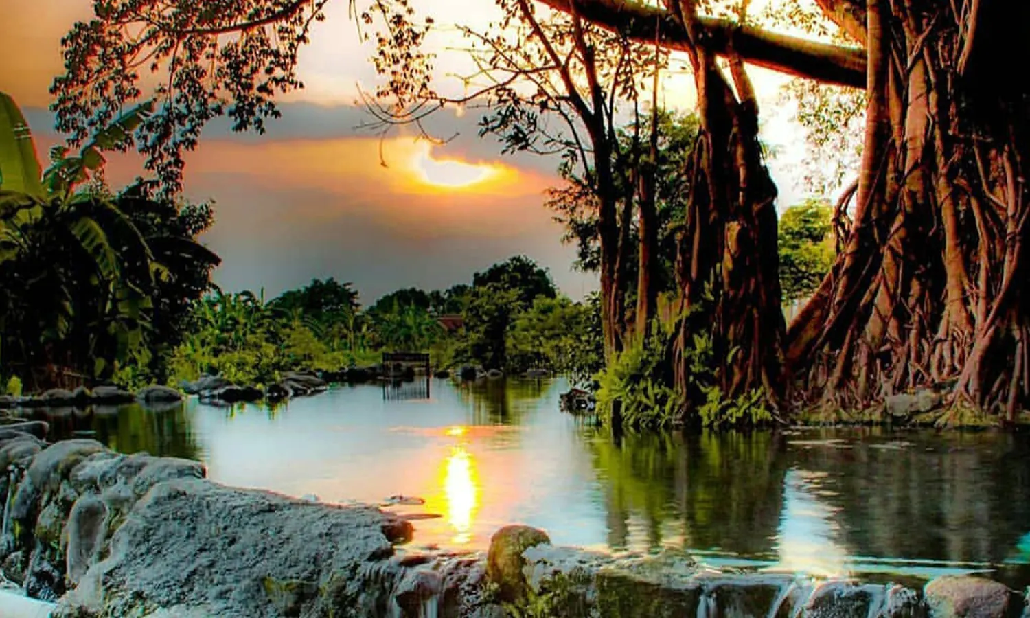 Tempat ini dihiasi oleh beringin juga bebatuan besar, sehingga pengunjung yang mandi, tidak akan kepanasan malah sebaliknya akan betah untuk menikmati air yang jernih dan segar.